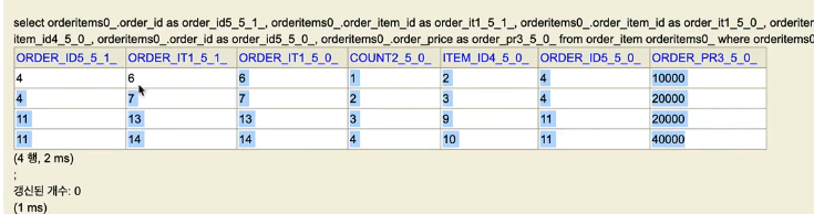 심지어 출력된 객체조차 그렇다. hibernate는 이미 이게 중복인지 알고 있지만 db에서 그대로 온 출력을 자기가 마음대로 자를 순 없으므로 그대로 반영하는 것.
