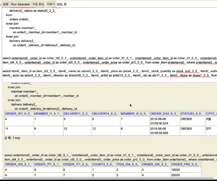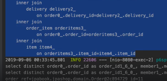 where를 통해 몇번씩 불러오는걸 내가 미리 in으로 모두 불러와 영속성 컨텍스트에 저장해놔서 다음에 불러오는 것도 여기서 불러오게끔 하는 것이다. 그래서 쿼리는 2번 나가는 것.