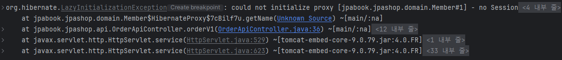 서비스 밖에서도 조회를 요청하고 있다. 그래서 OSIV가 켜져있으면 되지만 끄면 밖에서도 불러온다고 에러가 뜬다.
