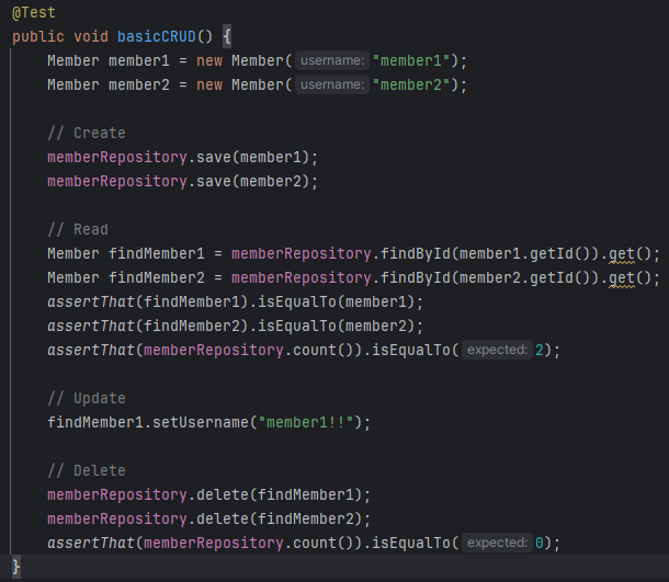 위가 직접 만든 클래스고 밑이 data jpa로 인터페이스로만 한건데 둘 다 잘 된다. 즉, 내가 직접 만든 기본적인 CRUD는 정의하지 않아도 이미 있다.