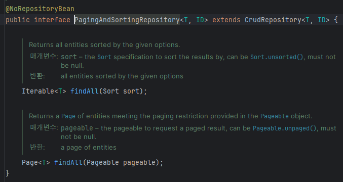 상속하는 JpaRepository는 특화 기능이고 더 공통 기능은 이게 상속하는 PagingAndSortingRepository. 이런식으로 공통일수록 더 부모에 있고 한다.