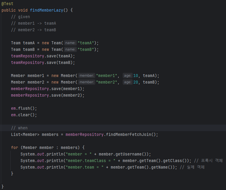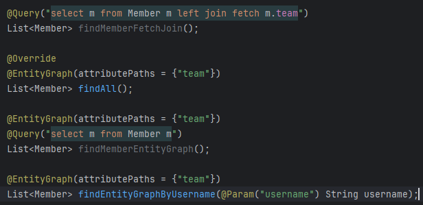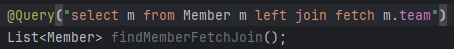 그래서 fetch join을 써왔었는데 실제로 어떻게 사용하는지를 보는거다.