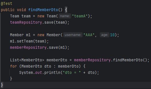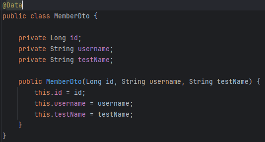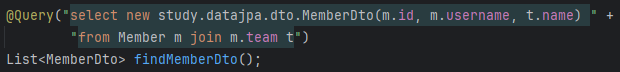 이 @Query는 엔티티에 대해서만 할 수 있는게 아니라 컬럼 및 dto 클래스에 대해서도 가능하다.