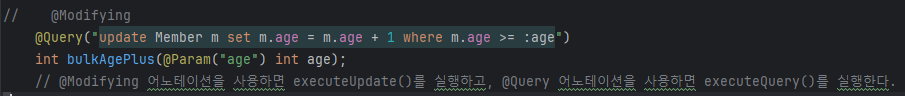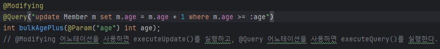 @Modifying을 넣어줘야 찾는게 아니라 업데이트를 한다.