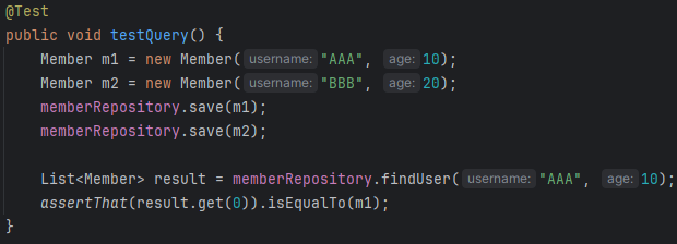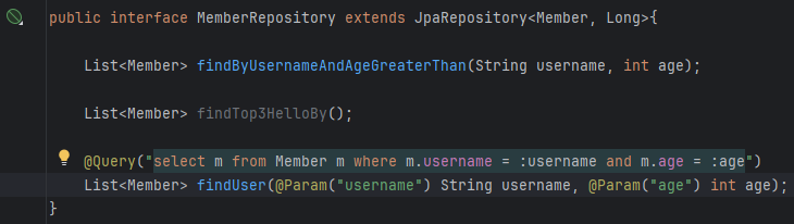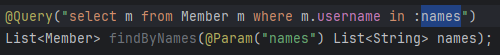 @NamedQuery라고 있는데 실무에서 거의 안쓰고 전에 해봤으니 넘어감. 장점은 실행을 위해 앱 로딩할 때 떠서 문법 오류같은 것들 바로 확인 가능하다는 것. 실제로는 상위호환인 @Query를 쓴다.