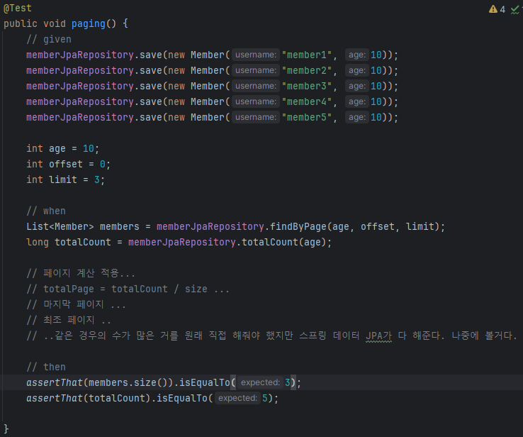 페이징 처리. 일단 직접 jpql로 짜보자.