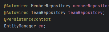 이렇게 남아있으니 EntityManager를 가져와서 비워주는 작업을 해야 한다. 어차피 repository에서 사용하는 entitymanager나 @PersistenceContext에서 가져오는 entitymanager나 같은 거라 해도 된다.
