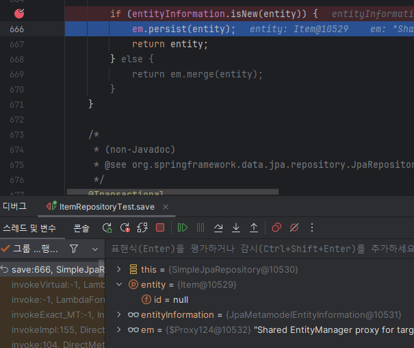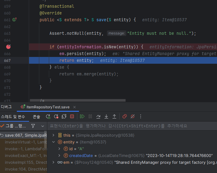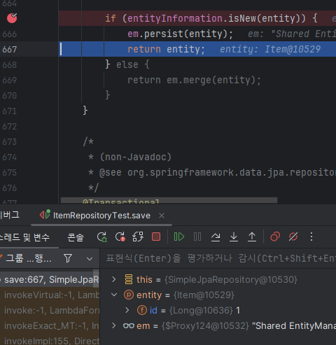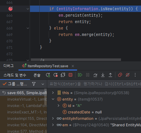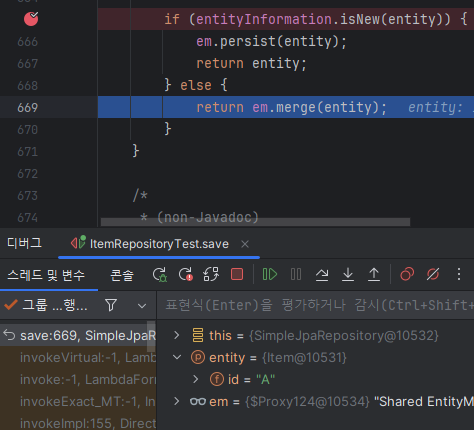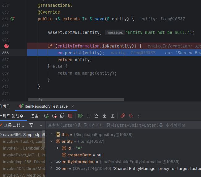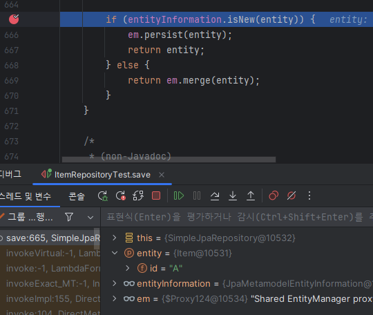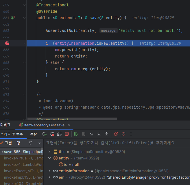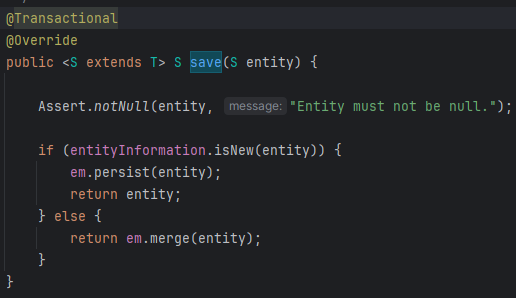 save 함수에서 이 엔티티가 실제 db에 이미 들어있는지 아닌지를 id로 확인하는데, 이걸 이해할 필요가 있다.