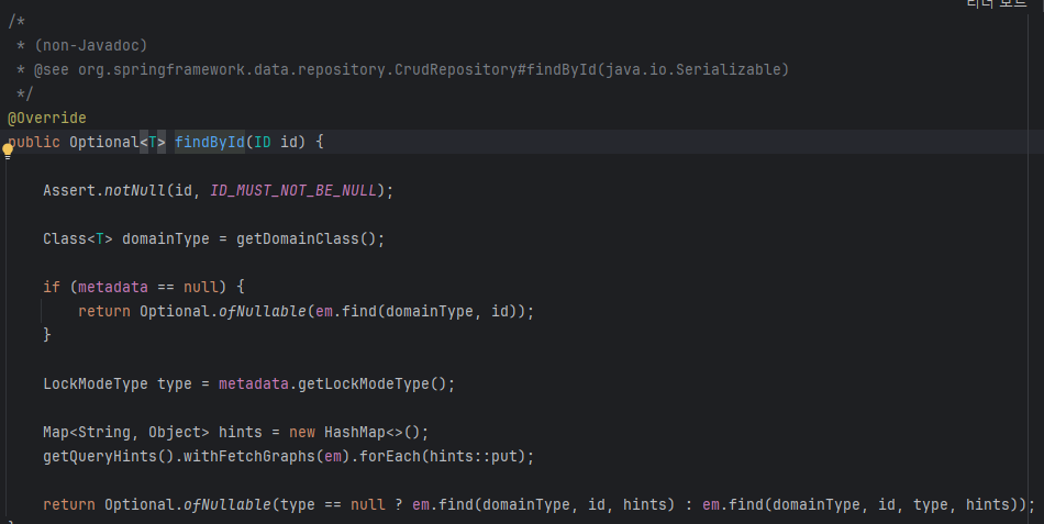 이런 findById니 findOne... 인 어쩌구 하는것들도 직접 EntityManager를 가져와 구현했듯이 다 똑같은 것들이다.