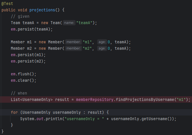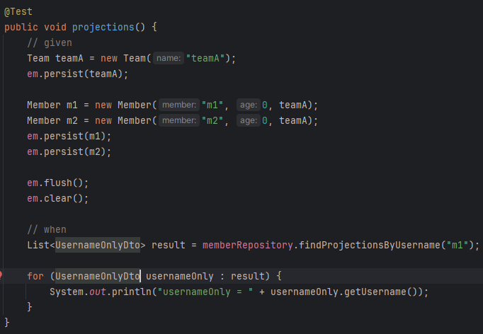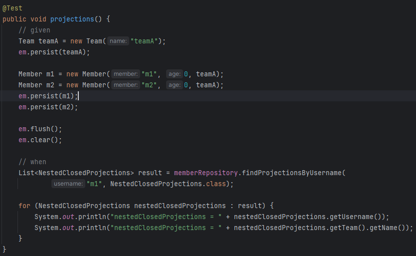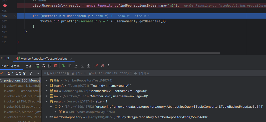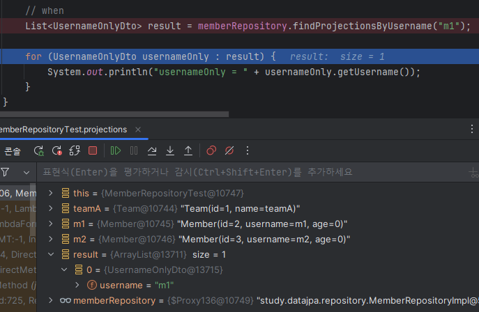 이렇게 원하는 속성만 sql문으로 불러오게 하는걸 closed projections이라고 함. @Value해서 여기에 결과를 더 붙일 수 있는데 이러면 어떤걸 사용할지 몰라 그냥 sql문 전체를 다 가져온 다음 결과에 붙임. 이래서 open projections라고 함.