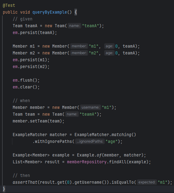 query by example은 새로 생긴 data-jpa의 기능임. 객체를 넘겨줘서 찾는다.