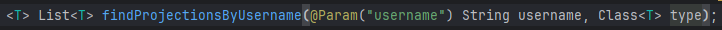 조금 복잡한데, 내가 가져오고자 하는 속성의 인터페이스 이름을 똑같이 만들어주고 반환 타입도 이걸로 지정한 다음에 불러오면 된다. 인터페이스는 뭐 상속할 필요 없이 그냥 하면 스프링이 알아서 해준다.