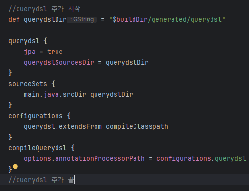 설정 파일에 querydsl 관련 설정 해준건 플러그인 때문에 그렇다.