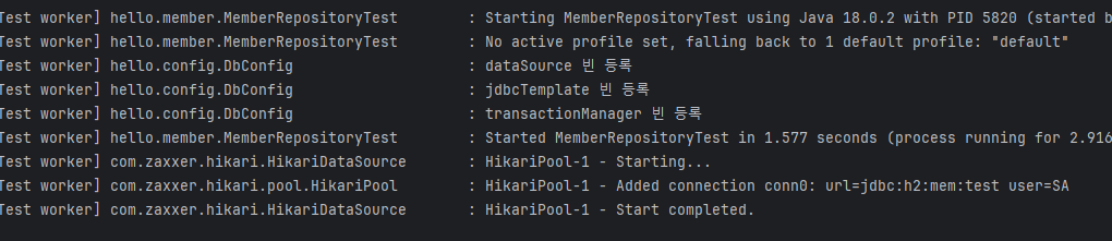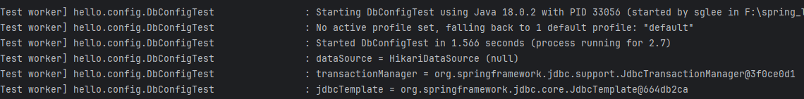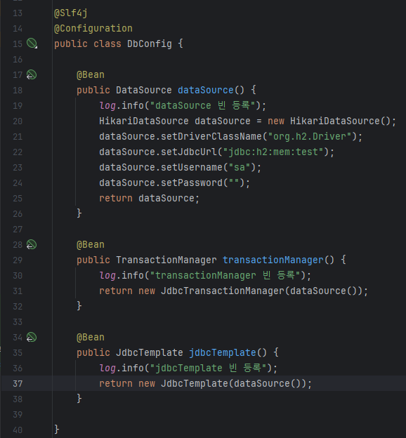 코드 내에서 직접 db관련해서 DataSource, TransactionManager, JDBCTemplate 모두 등록한다. 레퍼지토리에서 이걸 가져와서 쓴다.