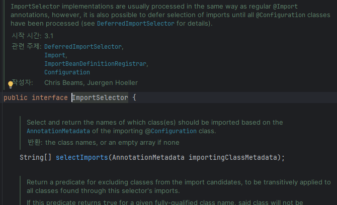 그렇게 쭉쭉 올라가다보면 ImportSelector라는게 나오는데, 일단 이 ImportSelector라는게 뭔지 알아야 어떻게 자동으로 긁어오는지도 이해할 수 있다.