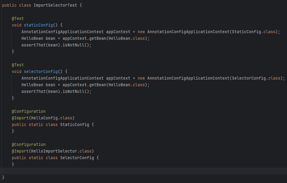 ImportSelector의 selectImports 함수 결과가 문자열 리스트인걸로 보아 저 내용이 META-INF/spring/...imports 파일 안에 들어가는 문자인걸 눈치챘을 수도 있다.