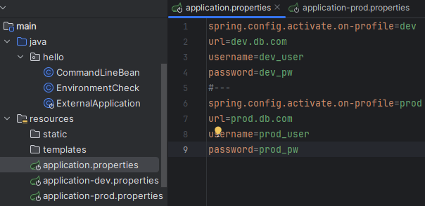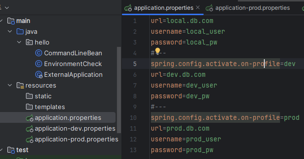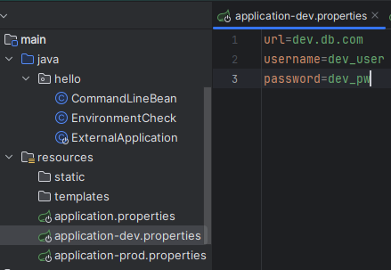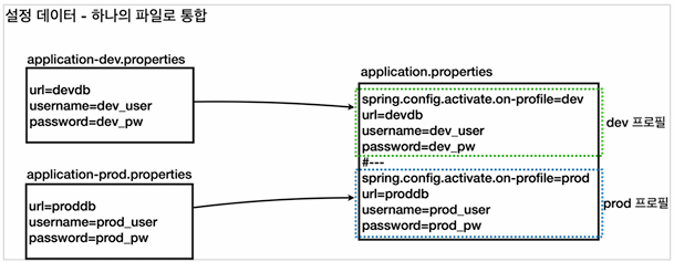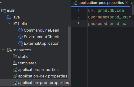 resources 폴더에 application-적용할거.properties를 넣고, 실행할 때 환경변수만 바꾸면 된다.