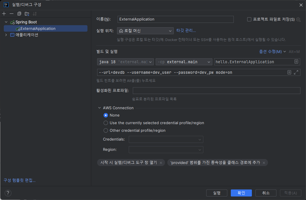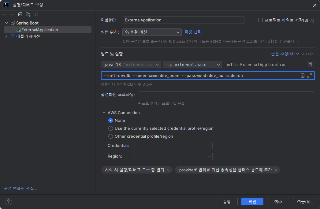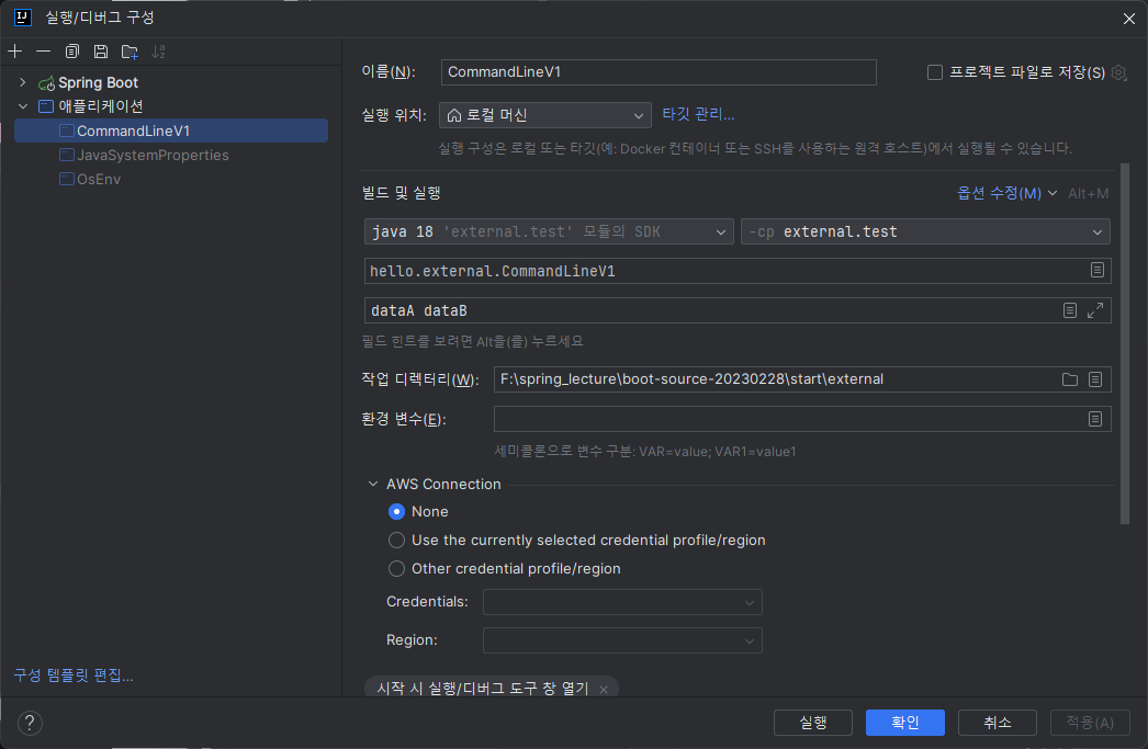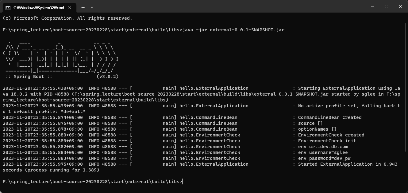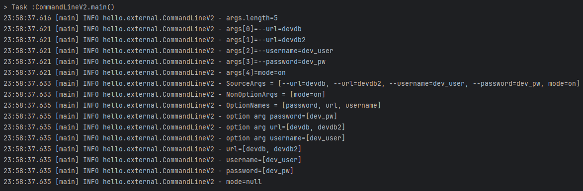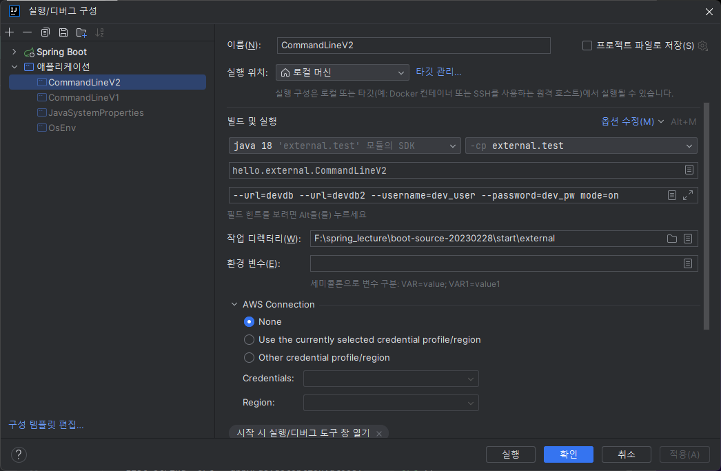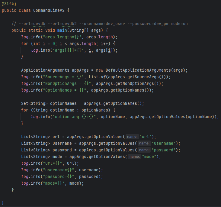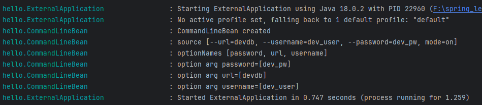 그래서 스프링이 알아서 해주는데, 업그레이드 버전인 커맨드 라인 옵션 인수를 보자.