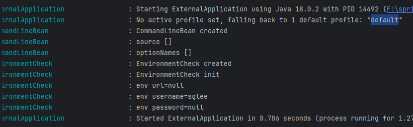 프로파일을 아무것도 지정안하면 default가 지정되는데, default가 아무것도 지정되지 않으면 그냥 null값이다.