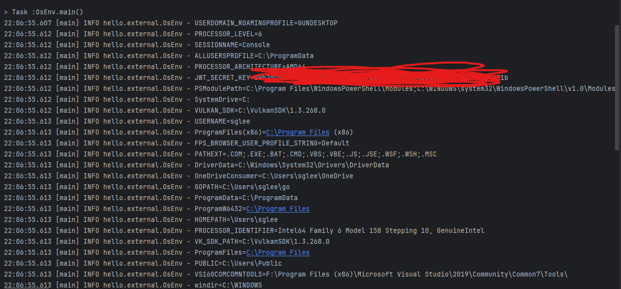 위 환경변수를 가져오는걸 자바에서 제공해준다.