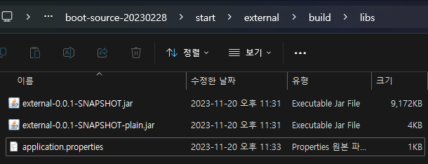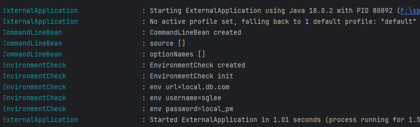 실제 빌드한 뒤, properties 설정파일 넣고 실행하면 알아서 파일 읽어 변수로 저장한다.