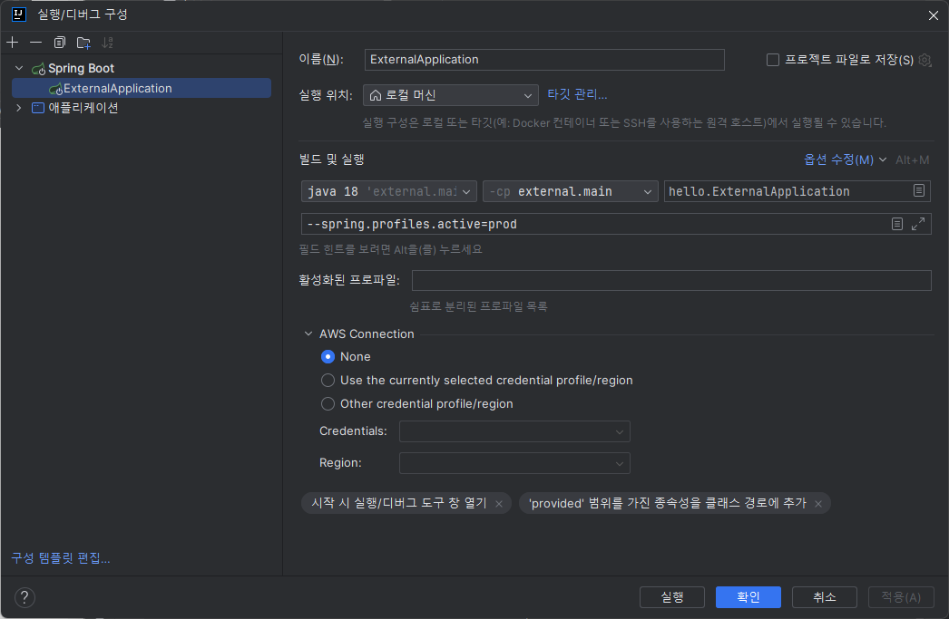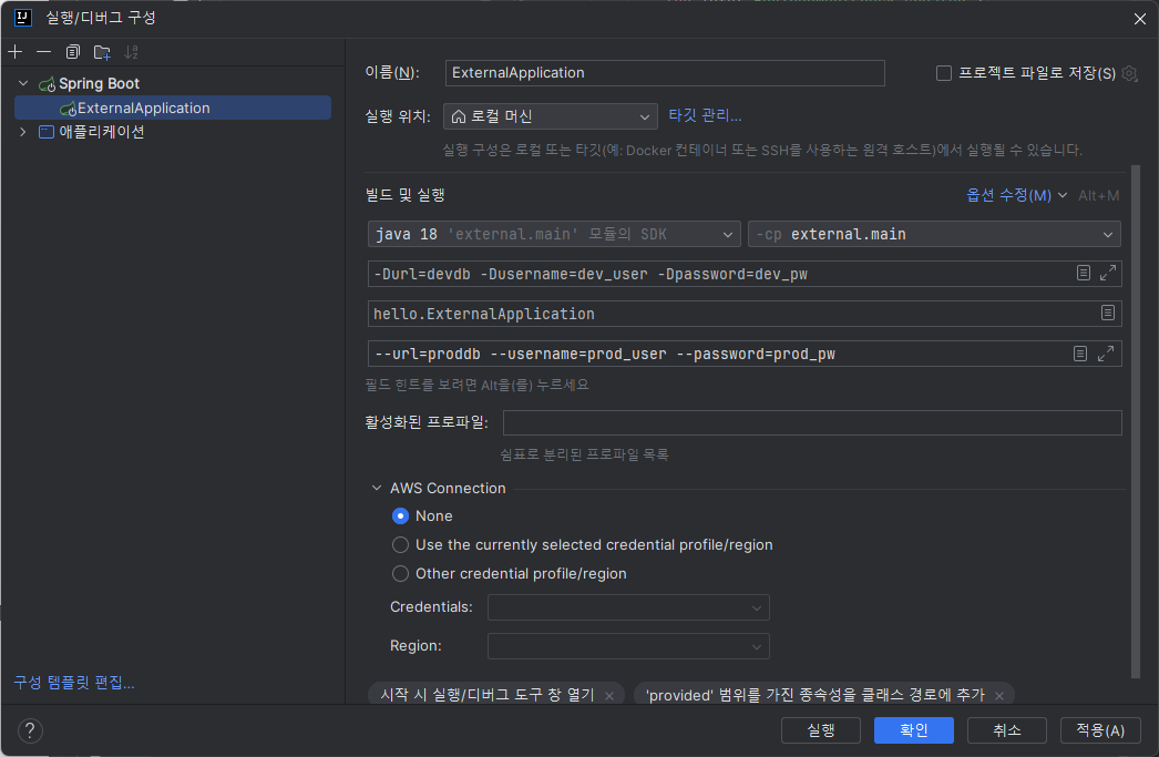 .jar 파일로 빌드해서 서버에 올리는걸 해봤는데, 같은 코드지만 개발용 서버, 라이브 서버에 따라 안에 들어있는 ip주소 값 등은 바뀌어야 한다. 옛날엔 이런 기능이 없어서 해당 변수만 살짝 바꿔서 빌드하는 방식으로 2번 빌드했다. 하지만 이젠 아니다.