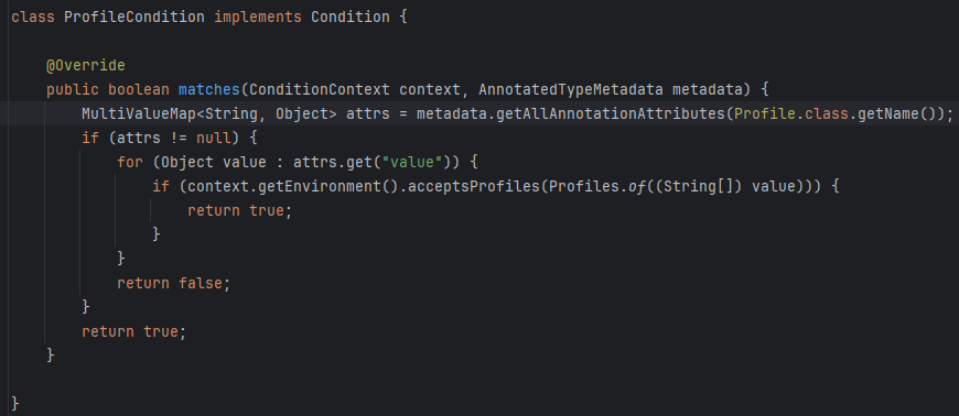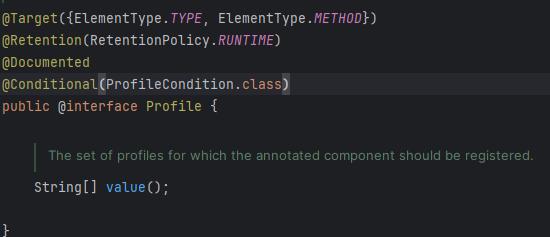 이게 어떻게 가능하냐면 사실 @Profile 안에도 @Conditional이 있어서 프로파일 글자 일일이 검사한다.