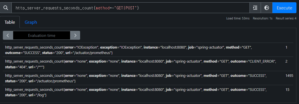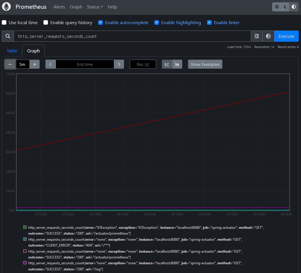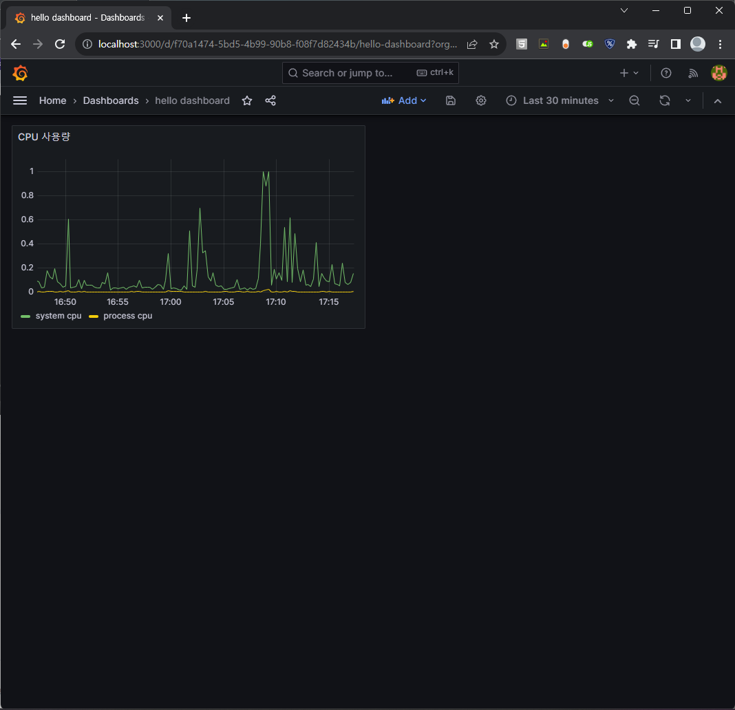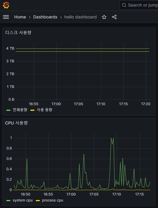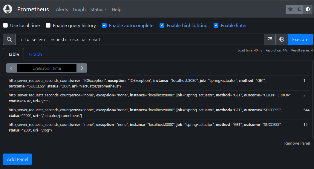 물론 이걸 하려면 서버 및 프로메테우스 다 실행하고 있는 상태여야 한다.