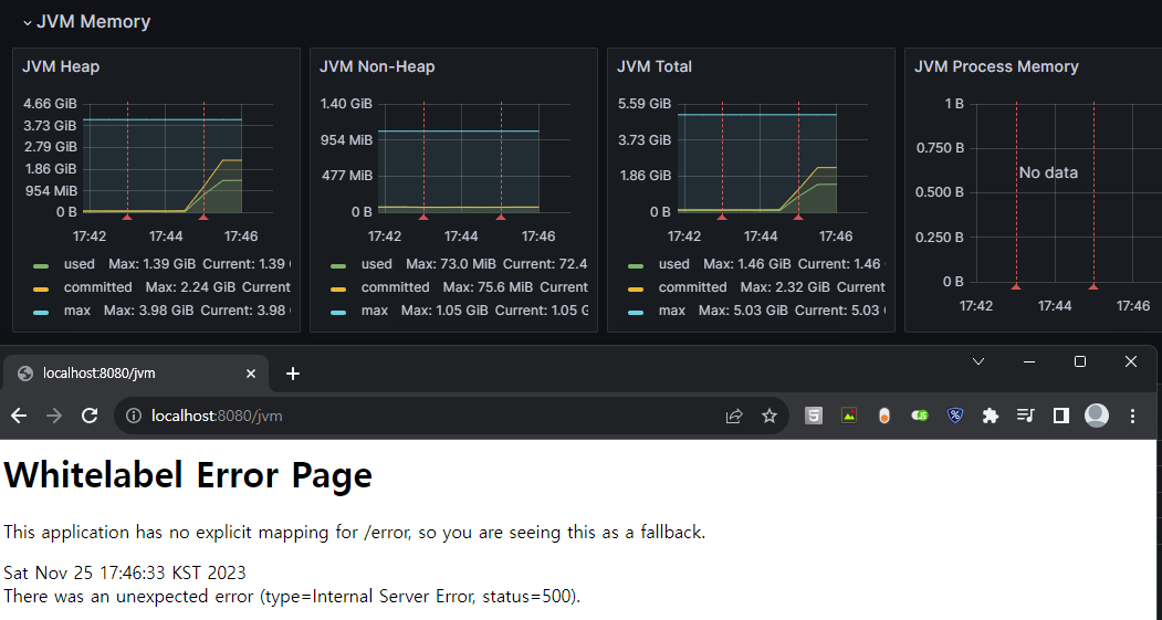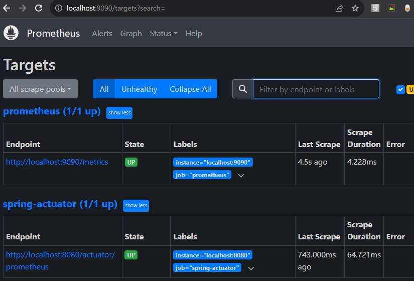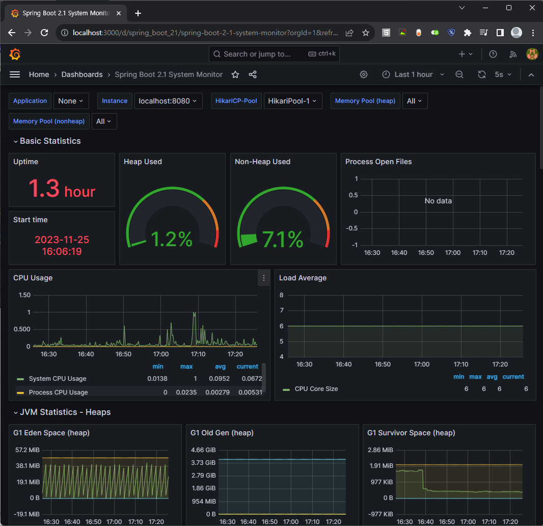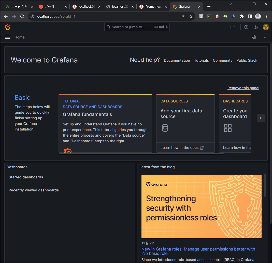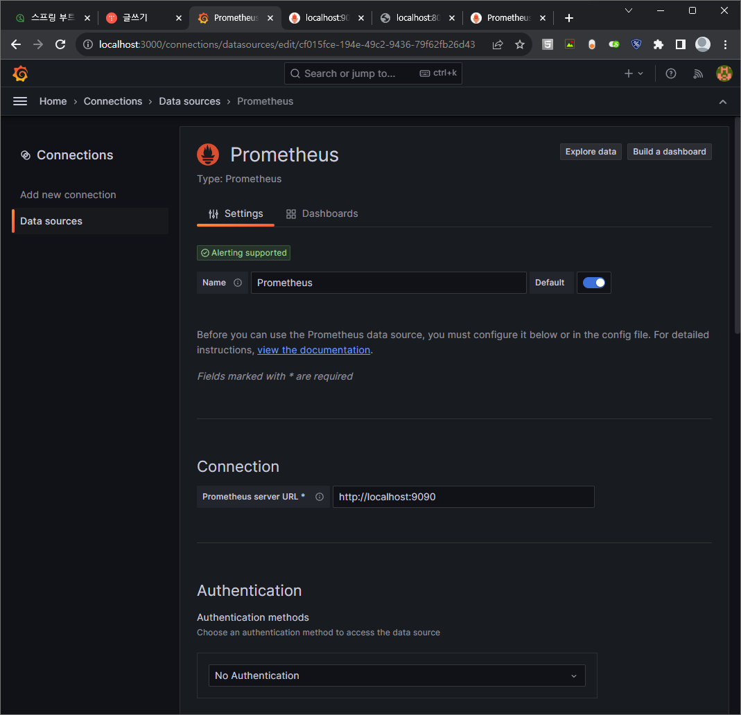 물론 이걸 하려면 서버 및 프로메테우스 다 실행하고 있는 상태여야 한다.