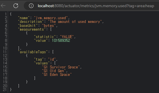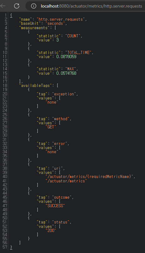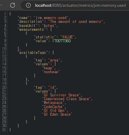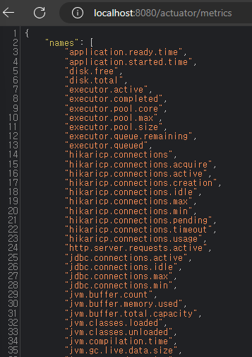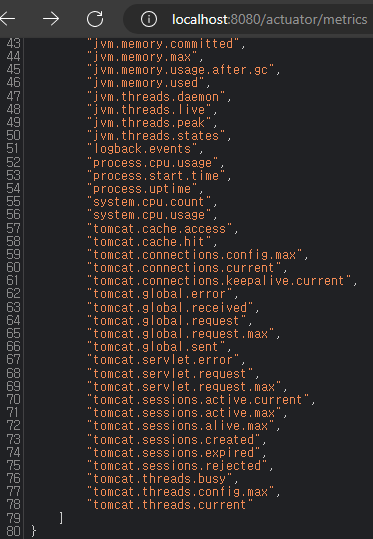 actuator에서 기본으로 제공하는 메트릭들을 보자.