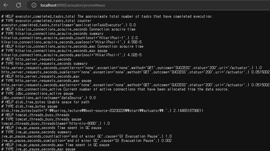 프로메테우스 라이브러리만 추가하면 actuator에 프로메테우스용 url이 생긴다.