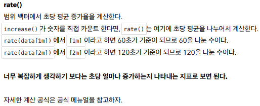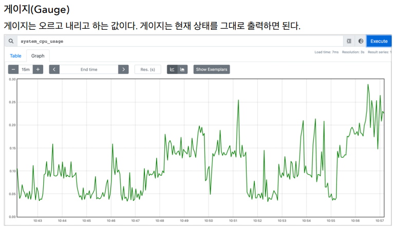 게이지랑 카운터 개념을 알아야 하는데, 게이지는 cpu사용량 같이 매번 바뀌는거고, 카운터는 조회수같이 꾸준히 증가하는거.