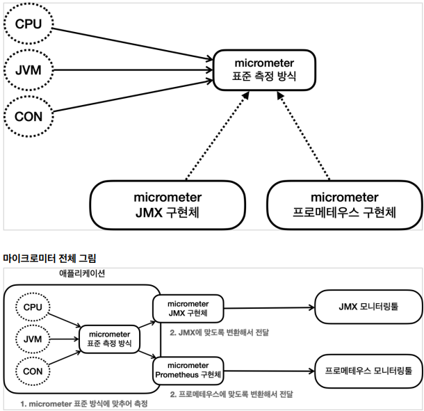 마이크로미터는 여러 모니터링 툴들을 하나로 통합시켜 추상화한거다.