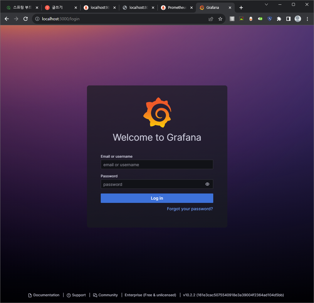 설치하고 기본값으로 로그인해본다. 포트는 3000임
