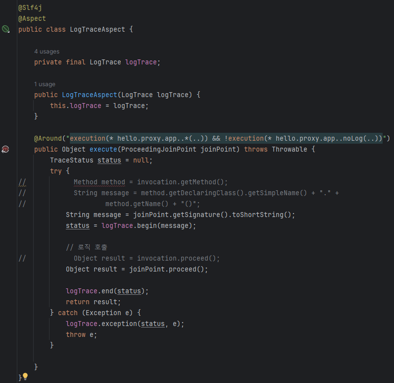 이 방식이 매우 편리해서 실무에선 대부분 @Aspect를 사용한다.