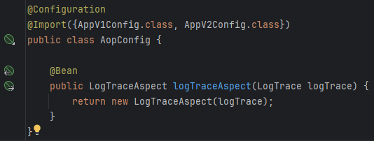 별 설정없이 @Aspect만 했는데도 된 이유가 위의 @Around가 포인트컷의 역할을 하고, 그 밑의 함수가 어드바이스의 역할을 하기 때문. 처음에 컴포넌트 스캔할 때 @Aspect가 붙어있으면 이걸 기반으로 어드바이저 빌더가 어드바이저를 생성해서 프록시를 만든다.