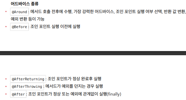어드바이스가 @Around만 있는건 아니고 여러개 있다.