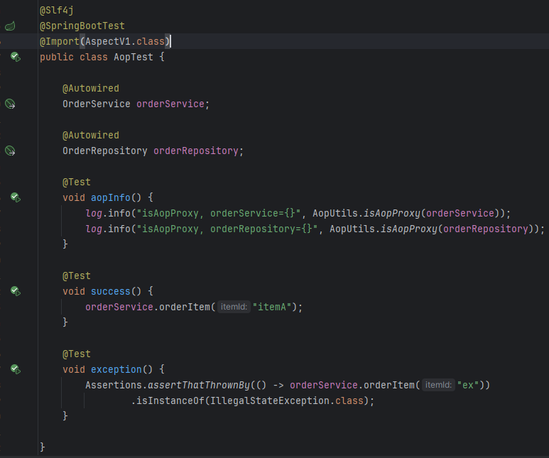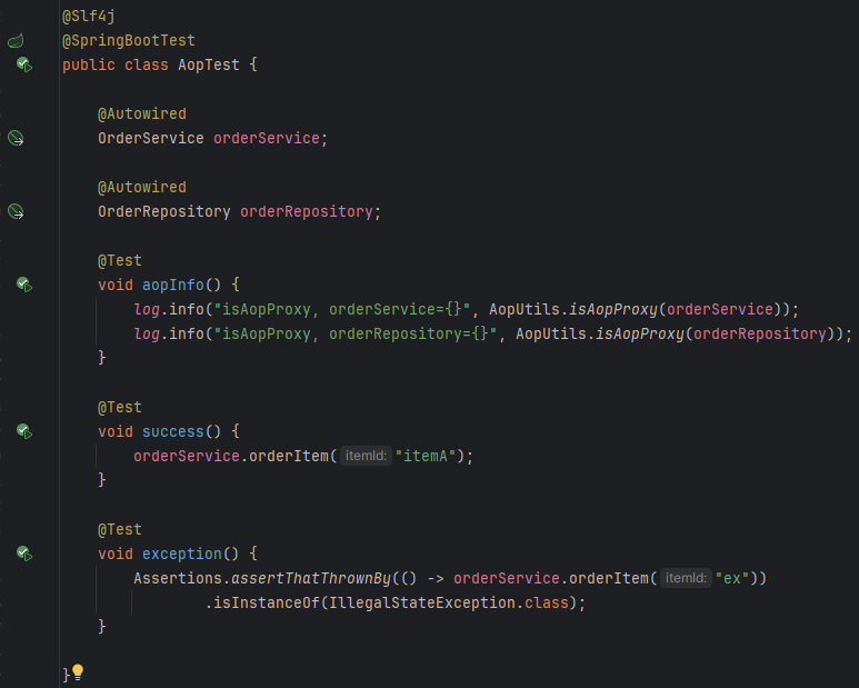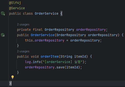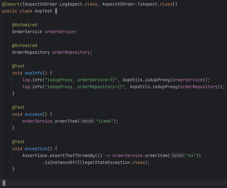 이제 and를 사용해보자. service에만 적용할 트랜잭션을 모방한 부가기능을 넣어보자.