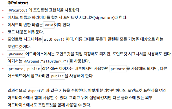 @Pointcut으로 함수화해서 한걸 이용하여 public으로 바꾸고 여러곳에서도 모듈화해서 사용할 수 있다.