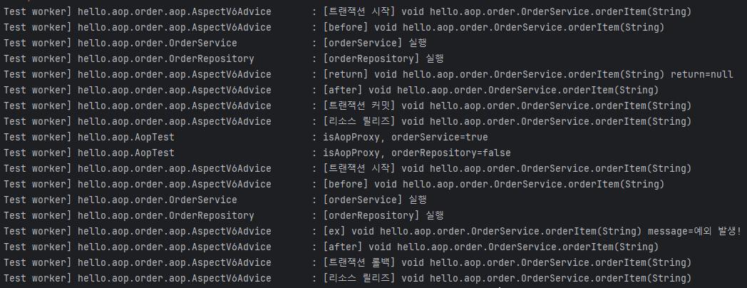 보면 service로 된 것만 트랜잭션 부가함수가 작동한 걸 알 수 있다.