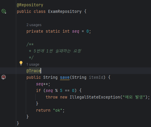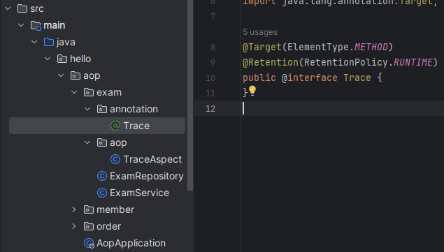 일단 여기에 로그용 어노테이션 @Trace를 만들어서 적용해보자.