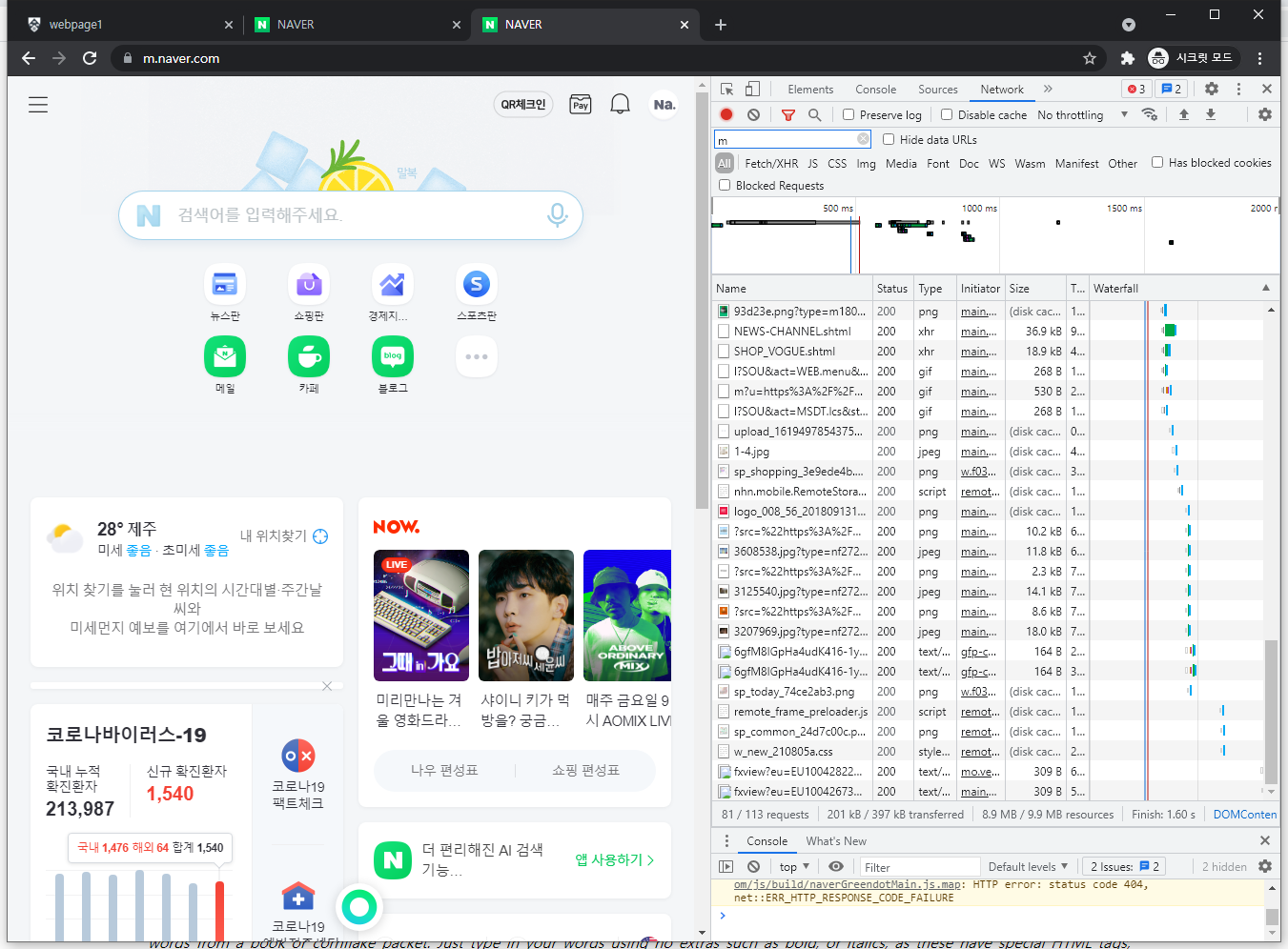 이미 불러왔던 페이지를 한번 더 불러오면 캐시된걸 불러와서 출력표시가 조금 다르다.