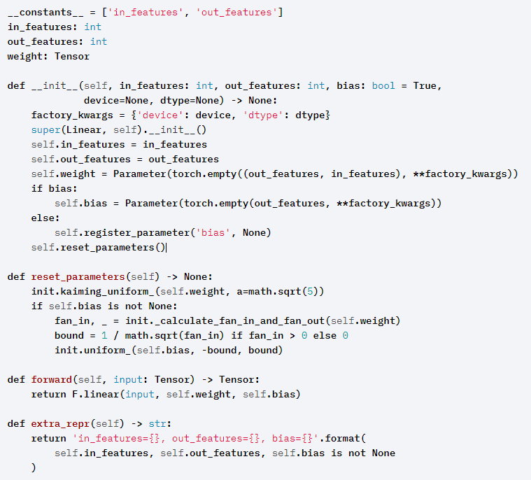 https://pytorch.org/docs/stable/_modules/torch/nn/modules/linear.html#Linear