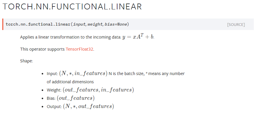 https://pytorch.org/docs/stable/generated/torch.nn.functional.linear.html