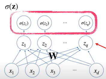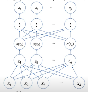 화살표가 w. x가 d개 있고 그에 따라 w 시작점이 d개. 끝점은 p개. bias + 하면 결과가 o.