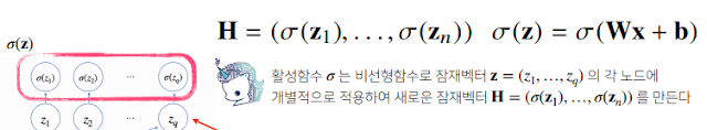 이렇게 출력값 마지막에 활성함수 계산해준다. 잠재백터 또는 히든백터. 뉴런이라고 부르는 부분.