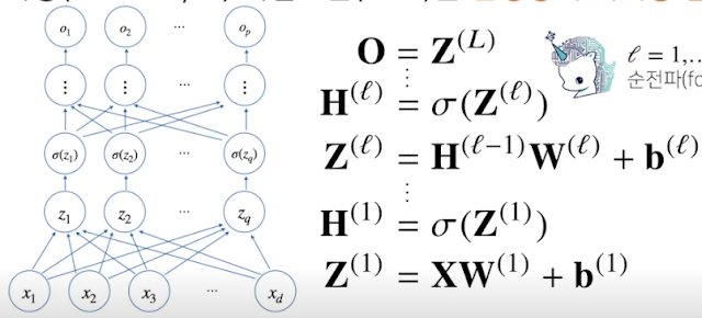 위해서 했던 O = XW + b 자체가 여러개. 구분하기 위해 W(1), W(2), ...