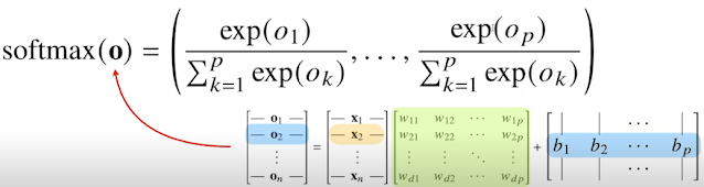 각 행벡터 oi는 데이터 xi와 가중치 행렬 W 사이의 행렬곱과 절편 b 벡터의 합으로 표현된다고 가정한다.