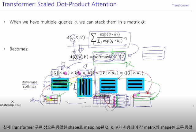 ##7. Multi-head Attention 1. Multi-head attention 및 self-attention 구현. 2. 각 과정에서 일어나는 연산과 input/output 형태 이해.