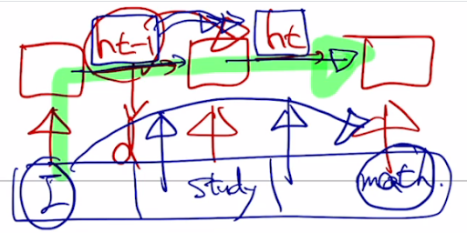 RNN은 왼쪽에서 오른쪽으로 가거나 반대로 해서 오른쪽에서 왼쪽으로 감. bi-direction RNNs 은 두개 다 하는데 이러면 I go home 단어를 넣는다고 했을 때 go 단어는 정방향에서 I 정보를 역방향에선 home 정보를 hidden state에서 가지게 된다. 그래서 이 두 벡터를 concat 해서 두개 다 가지게 함.
